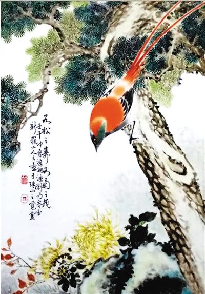 劉雨岑:如松之壽(粉彩花鳥瓷板)